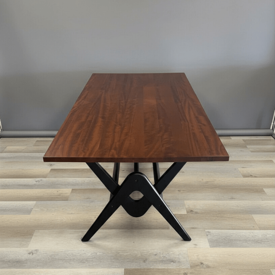 The signature detail of the Pierre J Table is its sculptural black ash base. The angled legs and cross supports create a bold profile that reads like modern architecture—adding visual interest without overpowering the room. This base design also provides stable support, making it a strong choice for daily use in both residential and commercial settings.