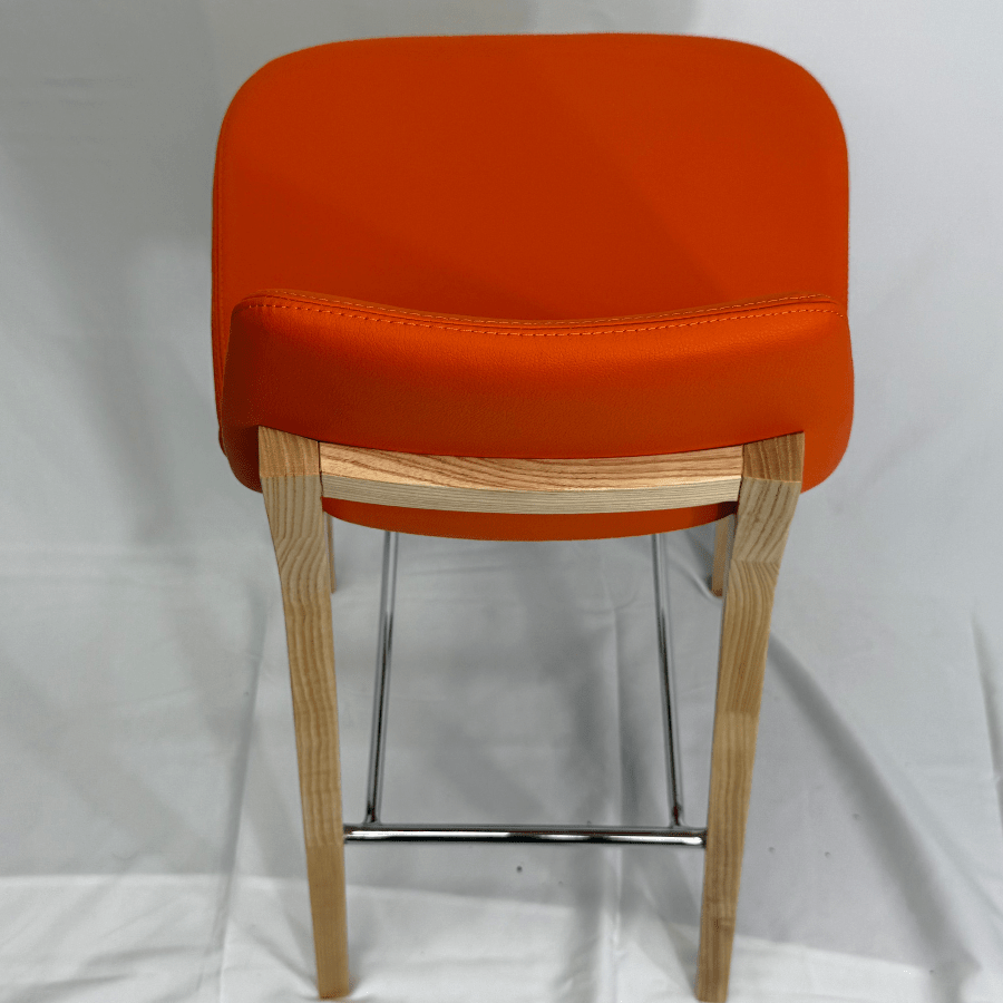Orange barstools strike a balance between trendy and timeless. Earthy brown leather has a relaxed, worn-in appeal that warms up a room. It complements natural wood tones and more rustic or farmhouse decors. Brown hides subtle scuffs better than the other colors. It's a flexible neutral that pairs well with many paint colors and furniture finishes.Â