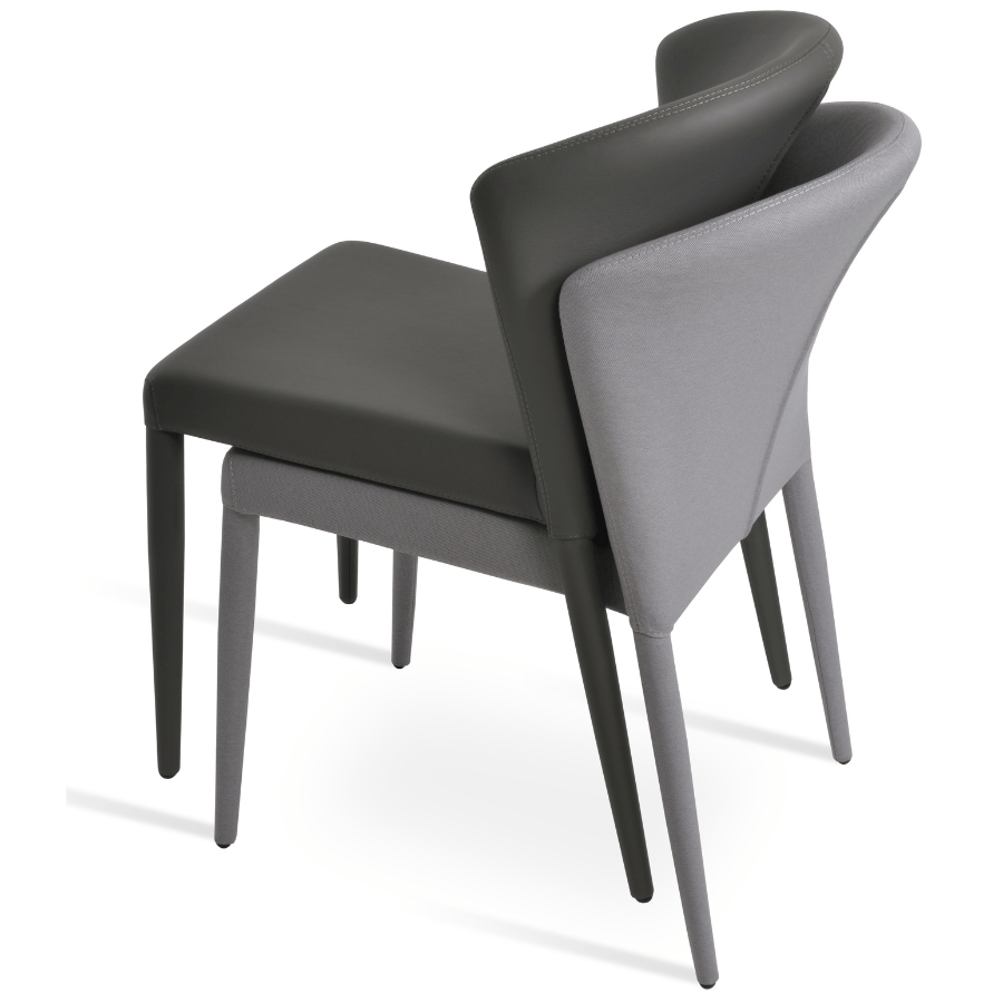 Capri Leather Metal Dining Chairs by sohoConcept are very comfortable modern dining chairs suitable for all body shapes in Canada. Capri stackable dining room chairs are not just comfortable designs but also very practical pieces of various kitchen dining sets. Upholstered seats are available in PPM faux leather and wool fabric. The metal (steel) legs are wrapped in PPM leather or wool fabric made in the UK (Camira Era, Camira Blazer). PPM leather colour choices are Black, White, Cream, and Grey.
