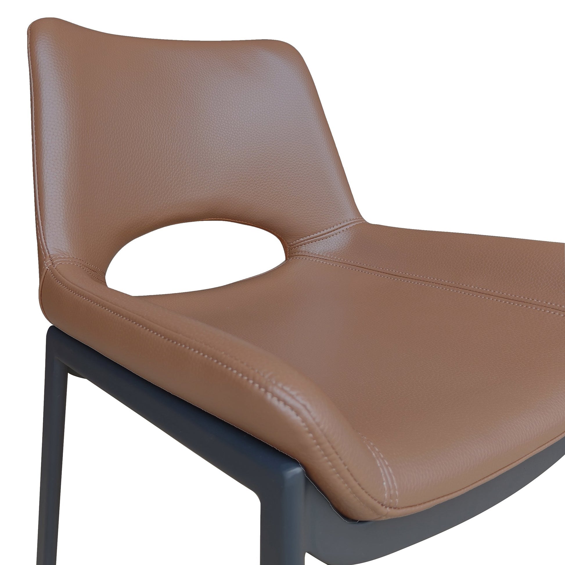 Each chair features a contoured saddle seat dining chair design with a gently curved back that supports you through long dinners and conversations. The textured brown faux leather upholstery looks upscale yet is easy to wipe clean, making this set ideal for busy dining rooms, open-plan kitchens or restaurant seating.