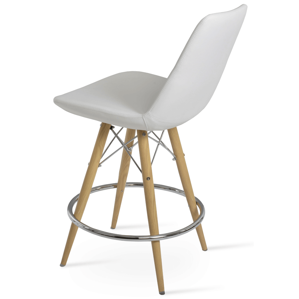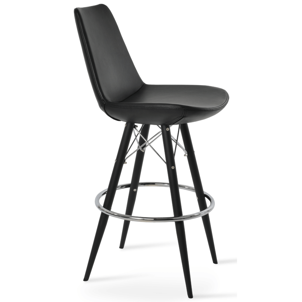 Eiffel Chair Leather Seat Metal Base Barstools by sohoConcept is a stylish, sturdy, non-swivel kitchen stool with high back. It features a wood-like looking steel tube metal base and comfortable upholstered PPM leather seat and backrest for ultimate comfort.