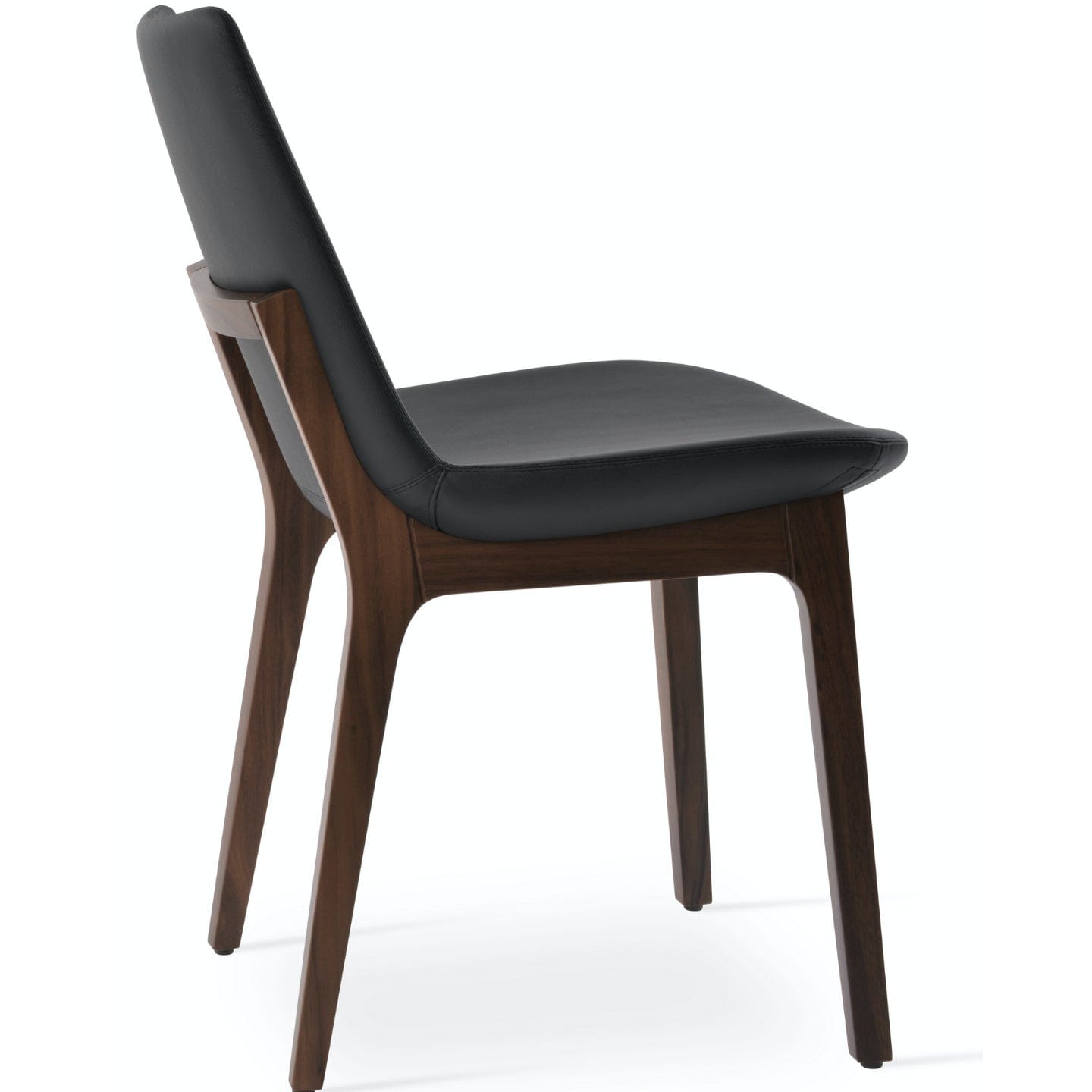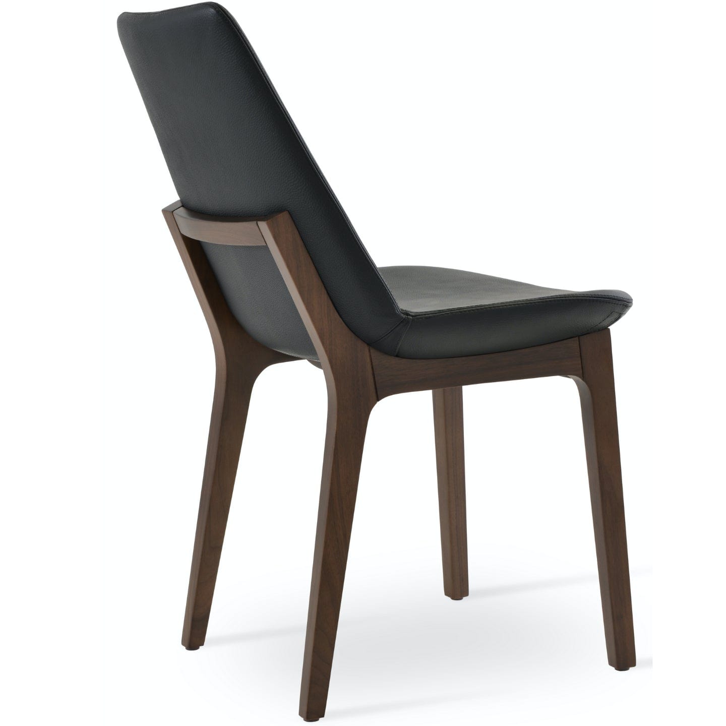Eiffel Wood by sohoConcept is a wood base and ppm faux leather seat dining chair for your dining room. American Walnut Finish wood frame is the base option matched with upholstered ppm faux leather seat and back, which will make sure that Eiffel Wood dining chair will elevate all types of dining rooms. Eiffel Wood dining chair is a striking yet plain, practical, and modern dining chair with comfortable seat and backrest for ergonomic climax. Exclusively Designed by sohoConcept.