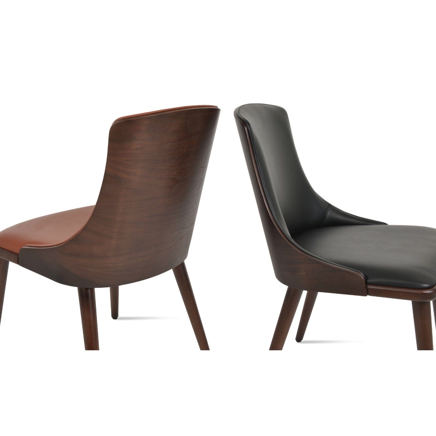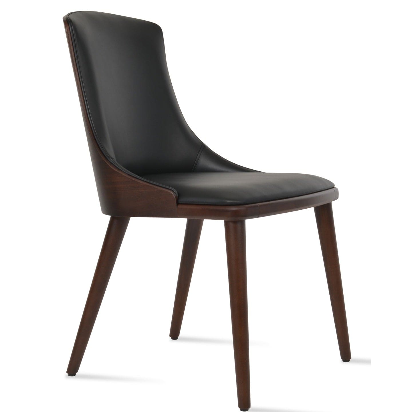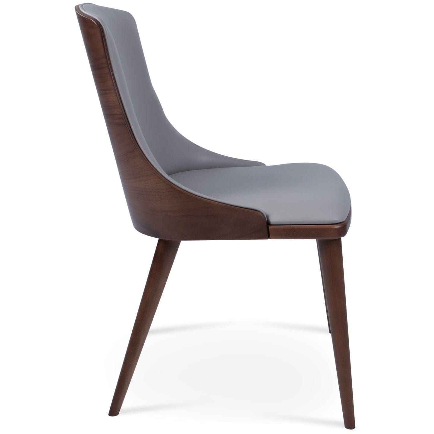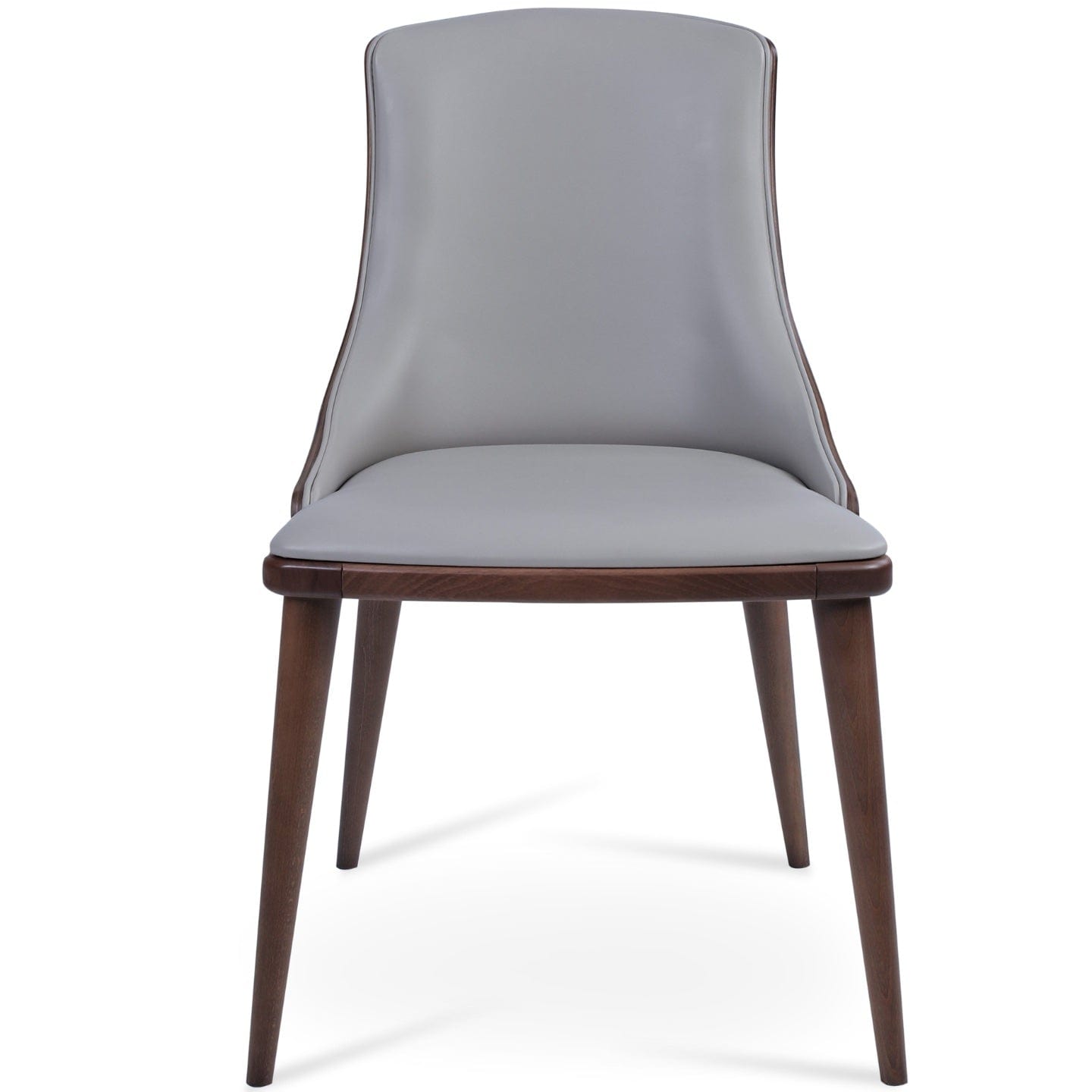 Beech Wood Walnut Finish wood frame is the base option matched with upholstered ppm faux leather seat. With plywood American walnut veneer backrest High Back Dining Chairs Romano by sohoConcept will elevate all types of dining rooms while providing ergonomic climax.