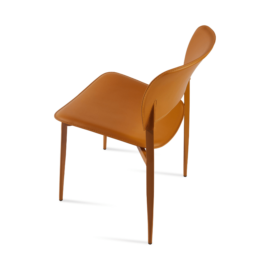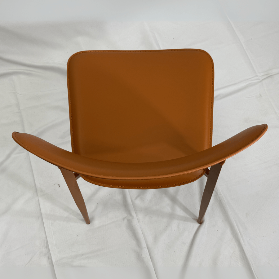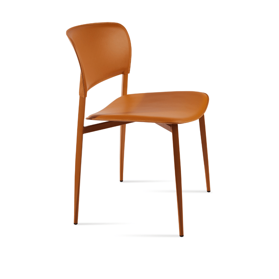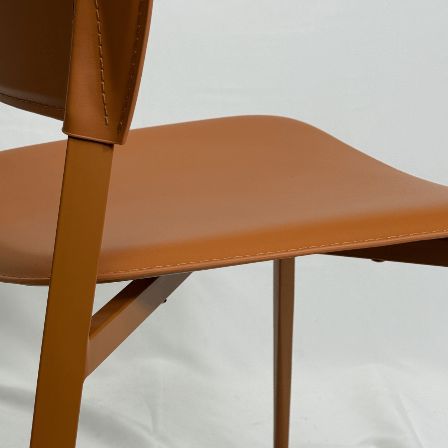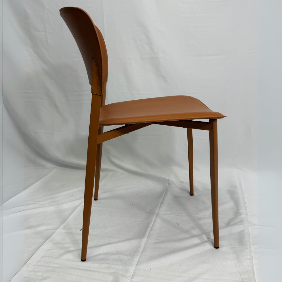 Lotus is an industry style dining chair with a full upholstery in Caramel Bonded Leather and Grey Bonded Leather with Stainless Steel Polished legs. Lotus is exclusively designed and it's suitable for both residential and commercial use.