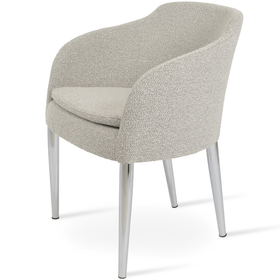 The Boucle Armchair is the perfect addition to any dining area. The luxurious boucle upholstering provides a comfortable seating option while also adding a touch of elegance and sophistication to your room. Its robust metal legs and supportive backrest ensure that it stands out from other furniture pieces, making it suitable for both contemporary and classic spaces. Whether you're looking for extra seating space or accent chairs, the Boucle Armchair can give your home an upgrade in both style and comfort