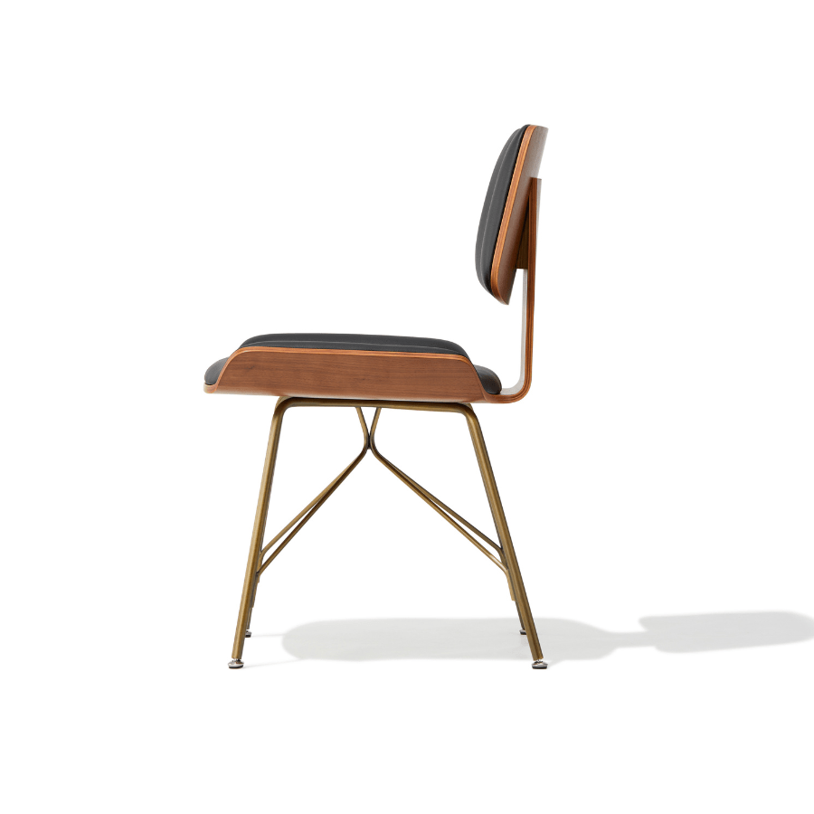 The Mid Century Wood Chair Concord exemplifies refined contemporary design with its meticulously upholstered seat and walnut-finished plywood back support. Distinguished by its brass-finished legs, this versatile dining chair represents the Industrial Modern team's commitment to functional elegance. Engineered to meet professional standards, it transitions seamlessly between residential dining spaces and commercial environments without compromising on aesthetic integrity or structural performance.