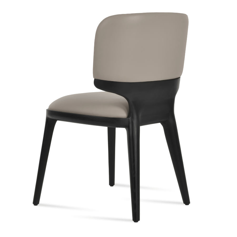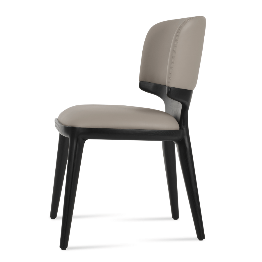 Rachel is a contemporary chair with a upholstered back and seat. The legs are finished in black ash. Rachel is exclusively designed and it's suitable for both residential and commercial use.