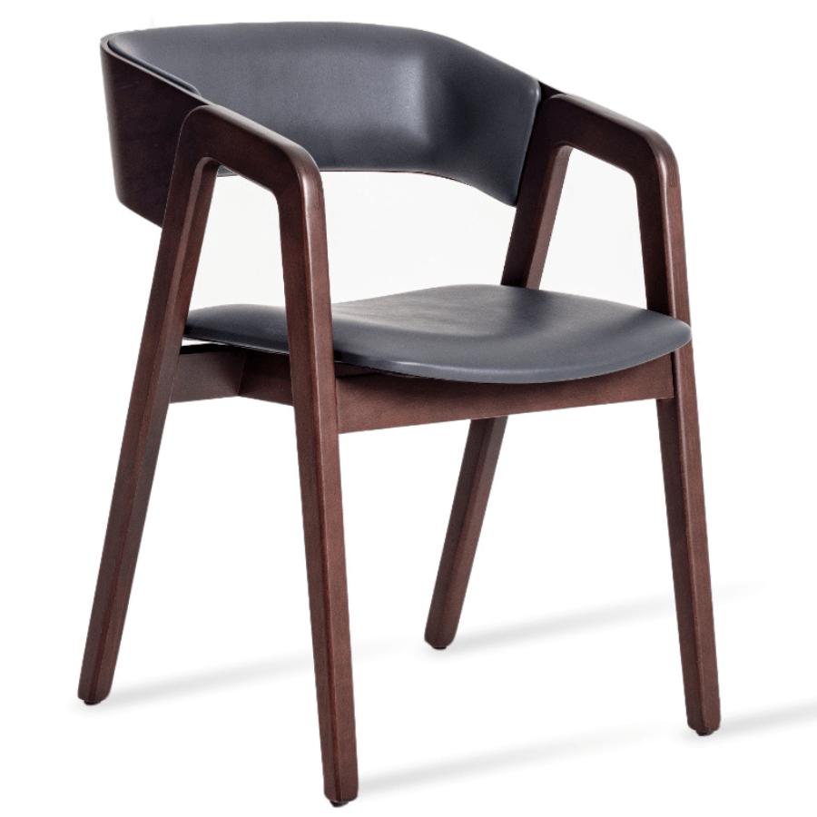 Restaurant Chairs Myndos Grey Leather is a wood base and faux leather upholstered dining room chairs with American Plywood back support in walnut and wenge finish. The legs are finished in solid beech walnut and wenge finish. Restaurant Chairs Myndos Grey Leather is a simple, plain, and and modern dining chairs with upholstered and comfortable seat and high backrest.Â