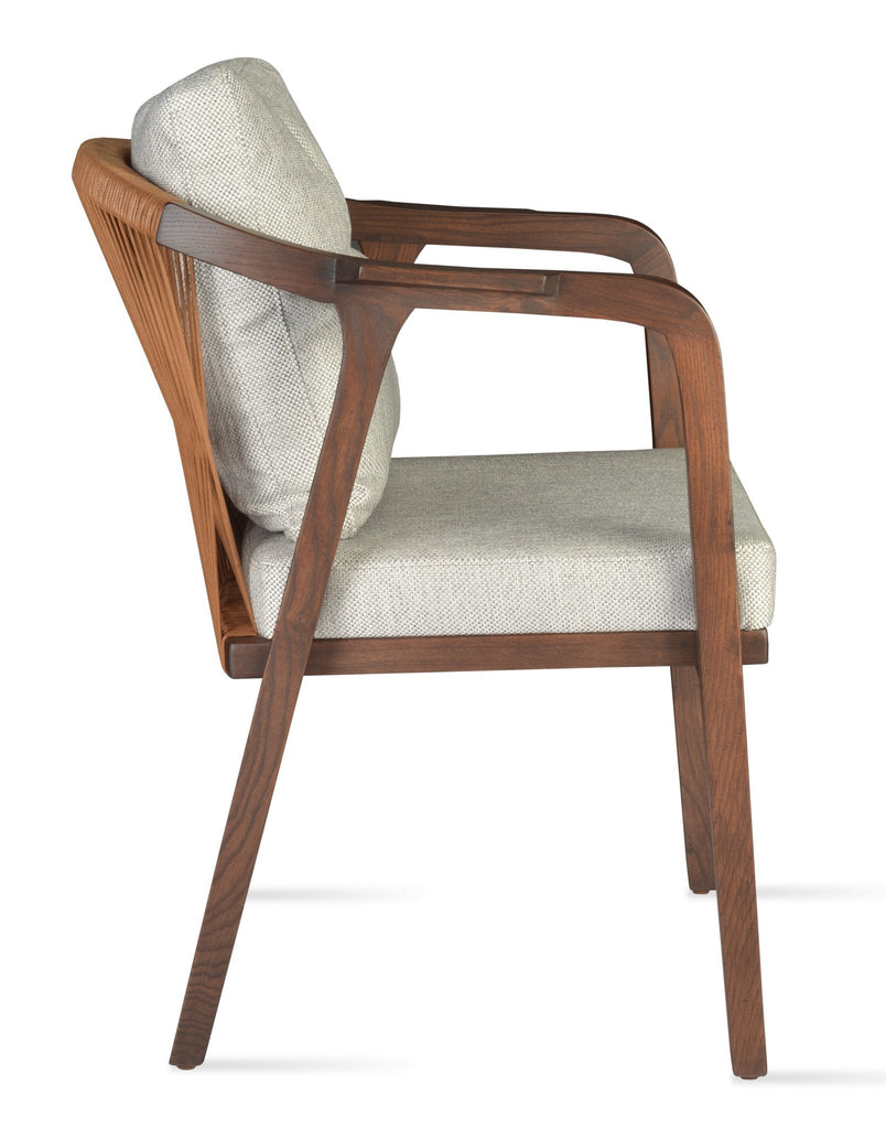 Rope Dining Chairs Indoor Drops Armchair is a wood base and upholstered seat Rope Dining Chairs with arms for your dining room. Ash Walnut Finish wood frame is the base option matched with upholstered fabric seat and back cushion, acrylic rope on the back, which will make sure that Rope Dining Chairs Indoor Drops Armchair will elevate all types of dining rooms. Rope Dining Chairs Indoor Drops Armchair is a striking yet plain, practical, and modern dining chair with comfortable seat and backrest for ergonomic climax. Exclusively Designed by sohoConcept.