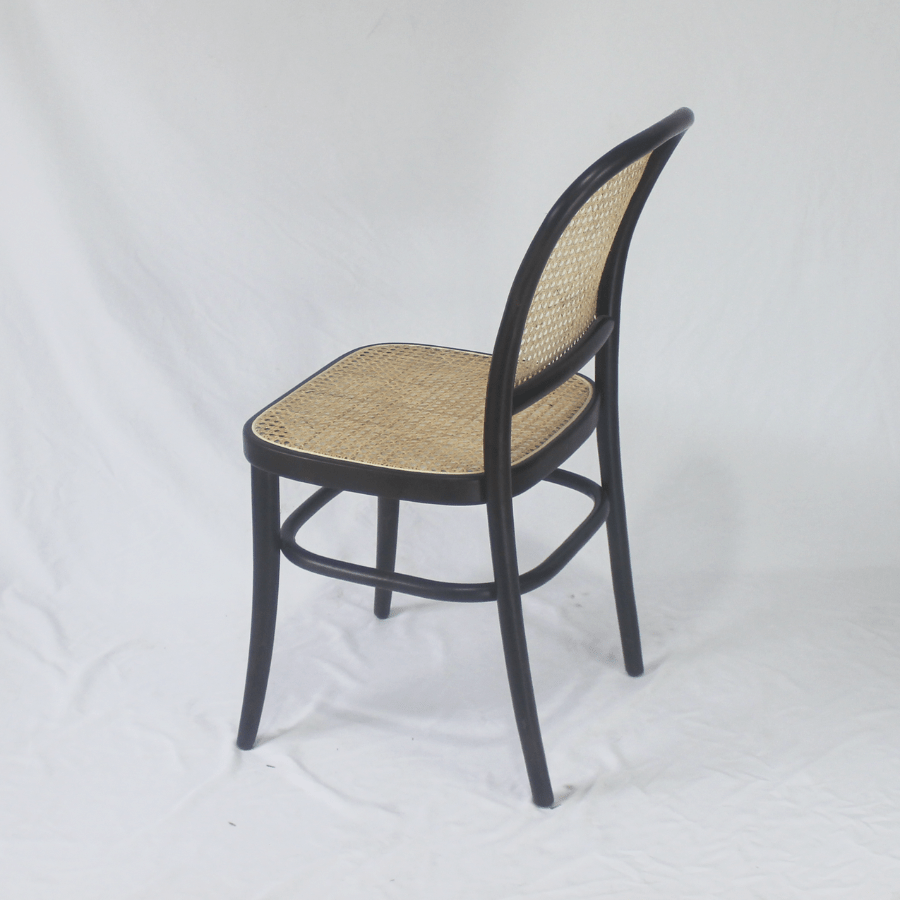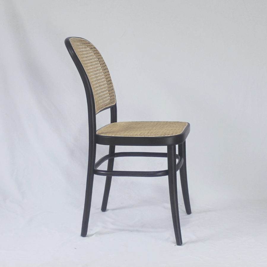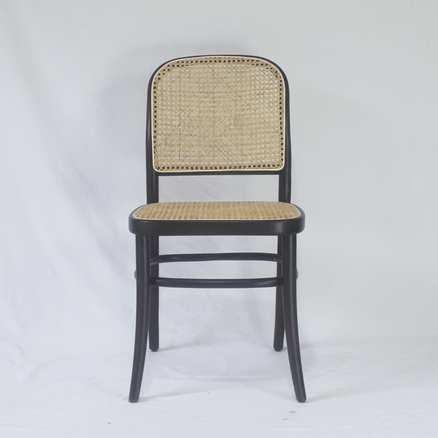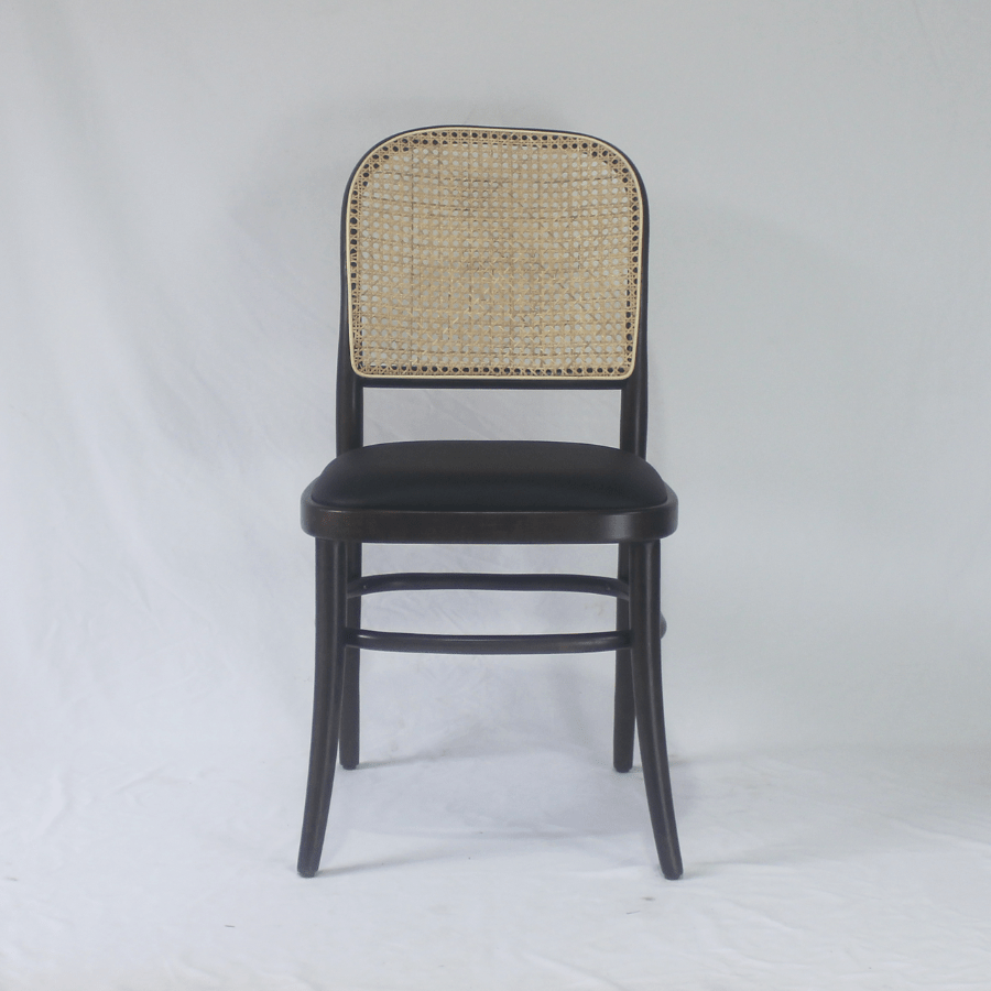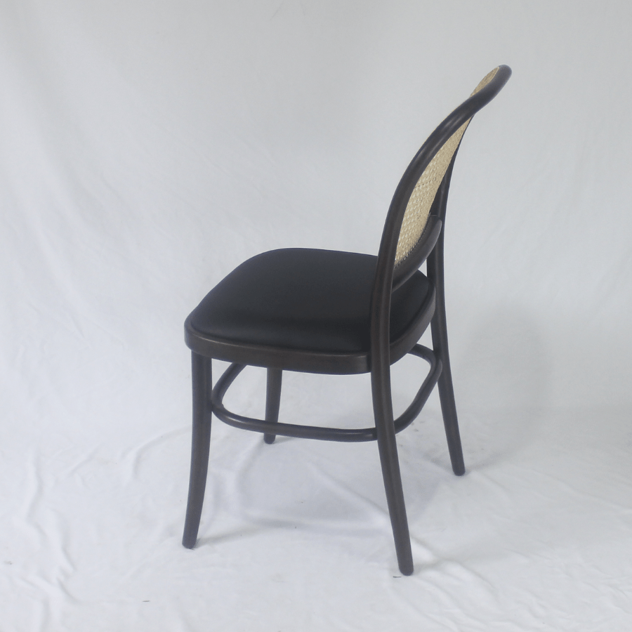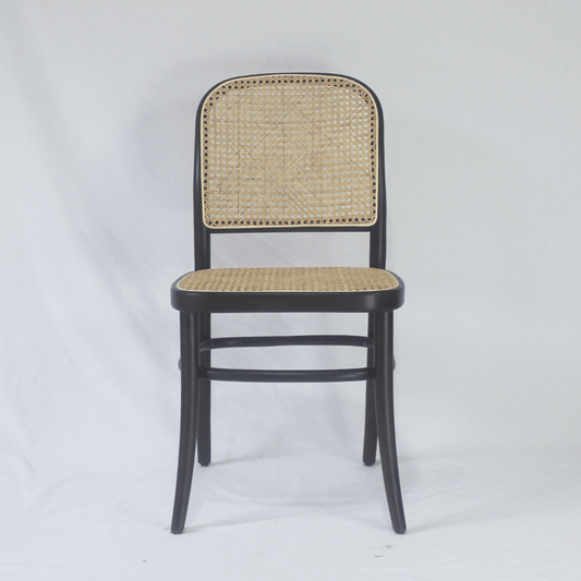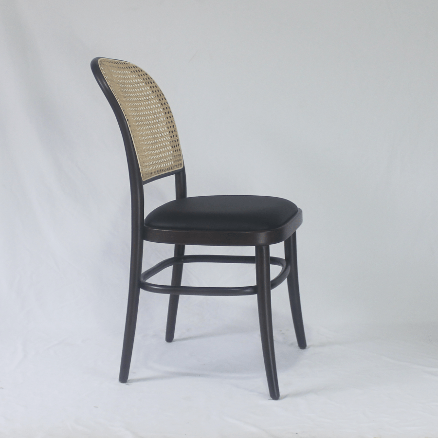 The Rumi Cane Chair combines classic design with natural materials for a sophisticated dining experience. Crafted from durable beech wood with a dark brown finish, it features handwoven natural cane on the seat and backrest, ensuring breathability and lightweight comfort. Its gently curved legs and rounded edges enhance both style and ergonomics. Ideal for dining rooms, kitchens, or cafes, this chair can also be customized with an upholstered seat for added comfort. The Rumi Cane Chair brings a timeless, vintage-inspired warmth to any interior setting.