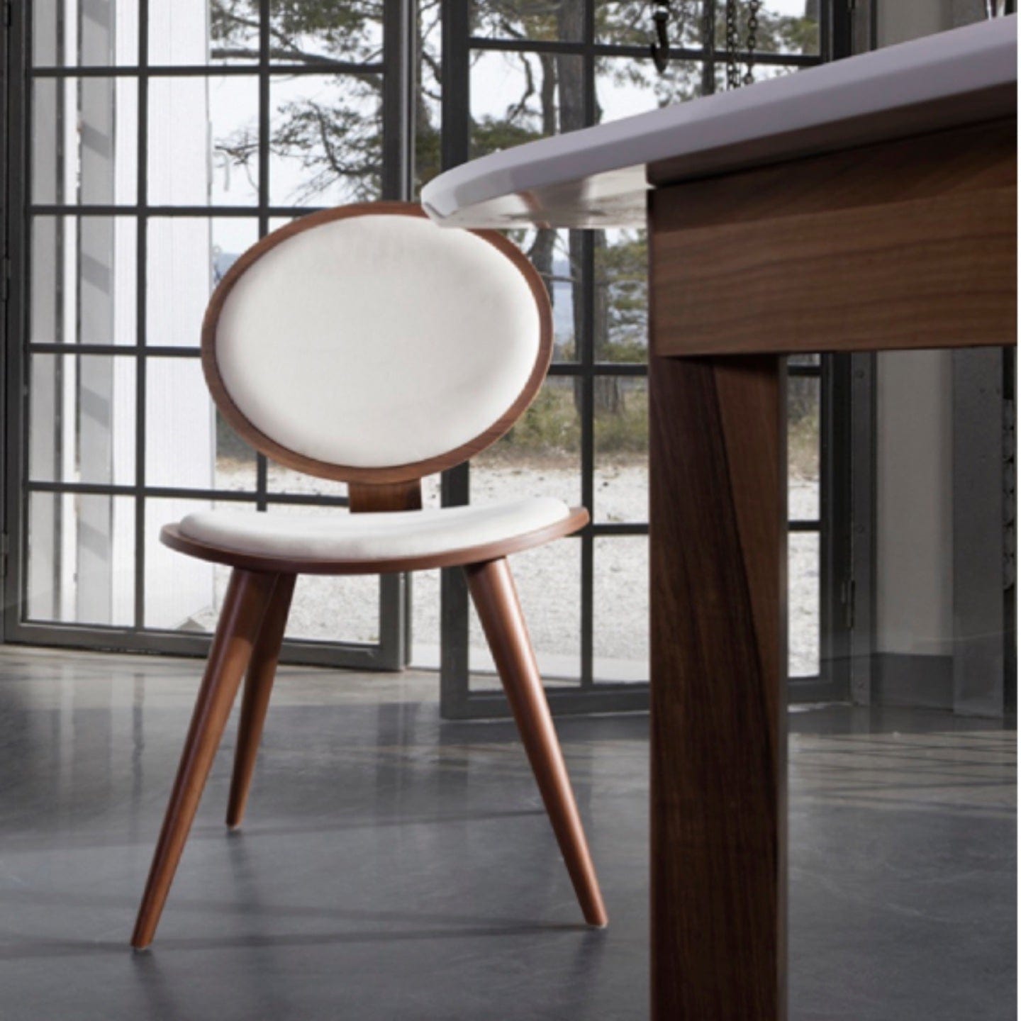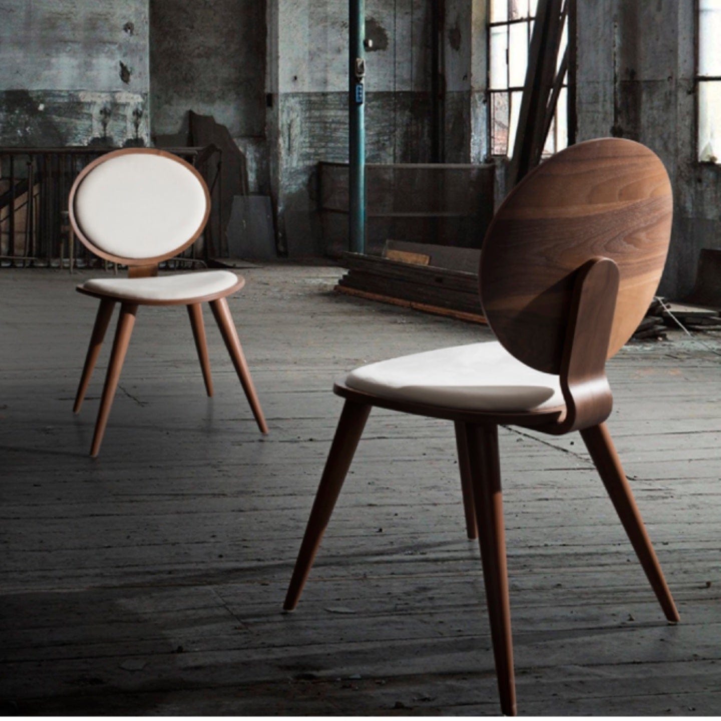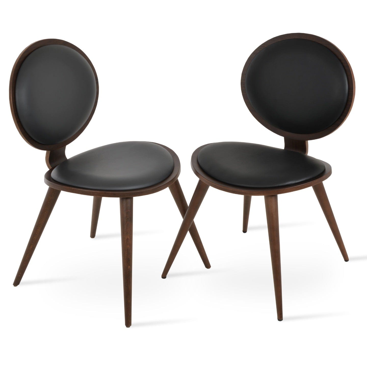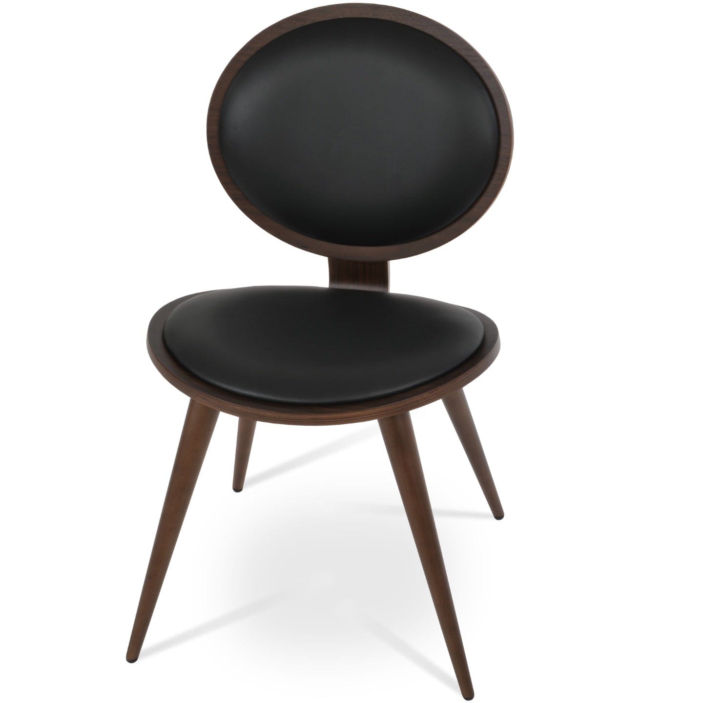 Tokyo Wood Dining Chair by sohoConcept is a wood base and upholstered with ppm faux leather dining chair for your dining room. Celebrate mid-century design, with an oval circular backrest and seat - for an outstanding dining chair. Made from Plywood American Walnut Veneer backrest and beech wood walnut finish legs. The cushioned seat and backrest sits on this wood frame for a staple piece that will stand the test of time.